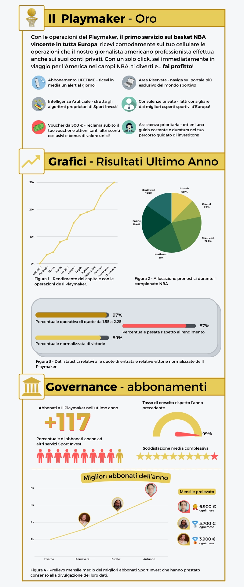 14.2 Offriamo diversi piani di abbonamento, compresi abbonamenti offerti da terze parti in aggiunta a prodotti e servizi propri. Alcuni piani di abbonamento potrebbero comportare diverse condizioni e limitazioni che ti verranno rese note al momento della registrazione o tramite altri metodi di comunicazione messi a tua disposizione. Potrai trovare informazioni specifiche in merito al tuo abbonamento Sport Invest visitando il sito web sportinvest.org e cliccando sul link “Gestione Profilo” pagina “Abbonamenti”, disponibile nella parte inferiore dell’area riservata utente, sportinvest.org/dashboard