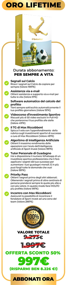 Per un periodo limitato di 21 giorni, offriamo l’accesso al nostro servizio avanzato “Il Fantasista” con uno sconto significativo fino al 50%.